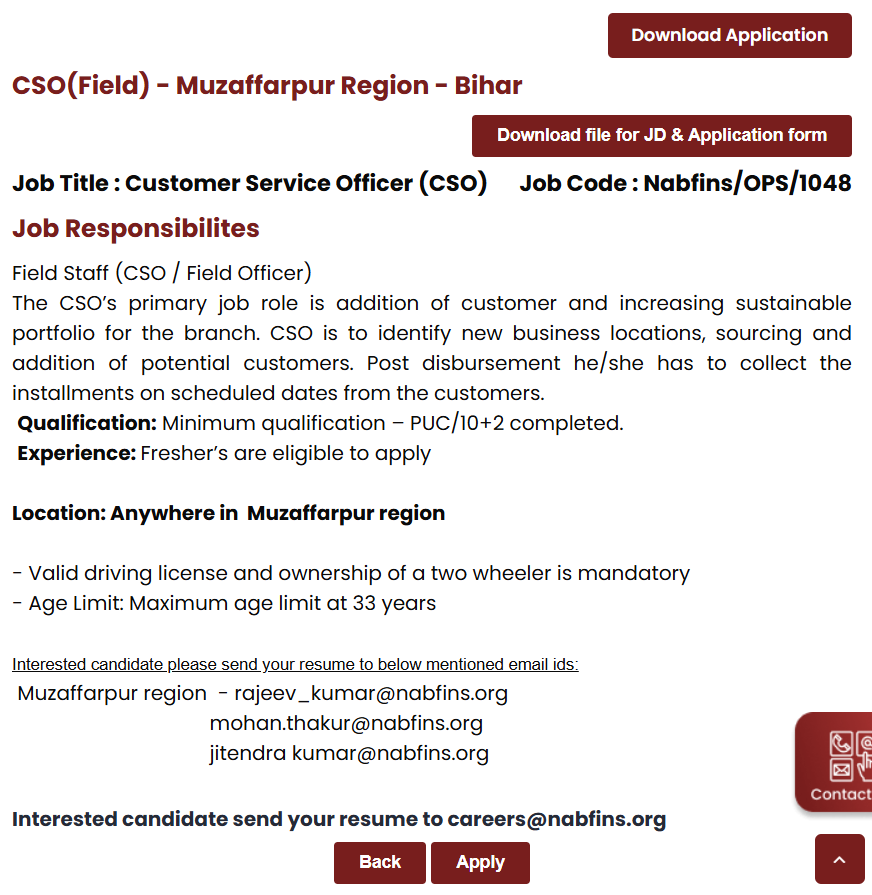 NABFINS CSO Recruitment 2025: Overview