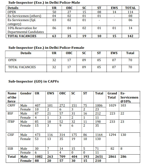 SSC CPO Vacancy 2025 – Post Details